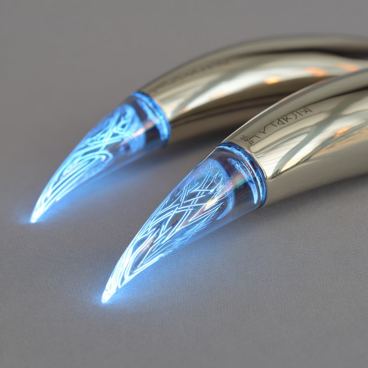 The Illuminator’s Tusk Caps are more than just a tool; they are a legacy item of the Tide-Forged Scholarchs lineage. The first set was crafted centuries ago by Matriarch Elara, a brilliant artisan and explorer who led the first expeditions into the deep, unlit cave systems of Aboriginal. Standard torches were unreliable in the damp caverns, and magical flames were often unstable. Elara, a master of microscopic Vo-Run scripting, pioneered a method of inscribing silver with glyphs so fine they could siphon the faint, ambient magic from Saṃsāra’s environment and convert it into pure, steady light.