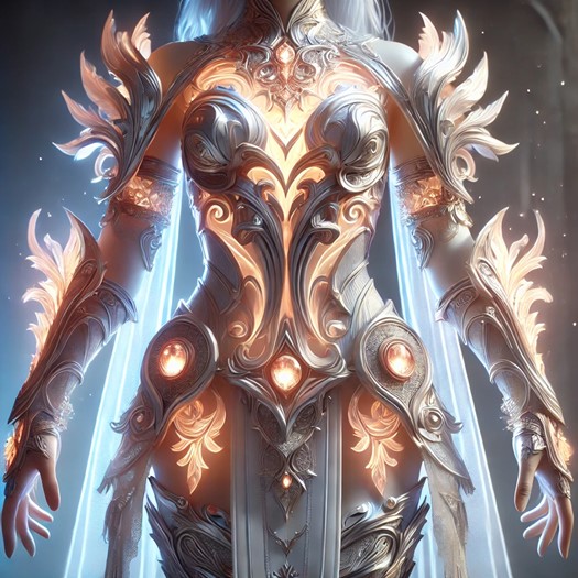 • Description: A radiant, ethereal armor that provides protection and illuminates dark places. The light emanating from the armor helps the wearer combat shadowy threats.
