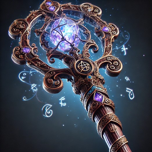 - Description: A powerful magical staff from a forgotten civilization, imbued with arcane energy and designed to enhance the spellcasting of its wielder. Its runes pulse with arcane light, and the crystal at its tip hums with magic.