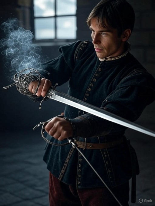 - Extra-Sensory Perceptions: I sense an aura of precision and control emanating from Eryndor, as if the rapier enhances his every move. There’s a slight unease, a ripple of magical energy that suggests a fragile power at work.