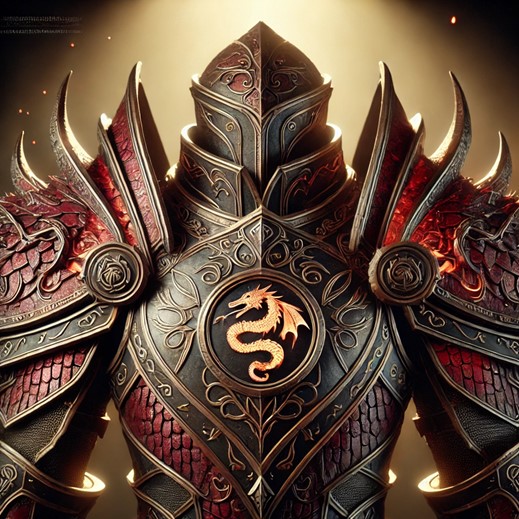 - Tags: Draconic Scales, Resilience, Reinforced, Ornate Design, Battlefield Dominance, Indomitable, Knightly Prestige, Legendary Craft, Physical Defense, Status Symbol
