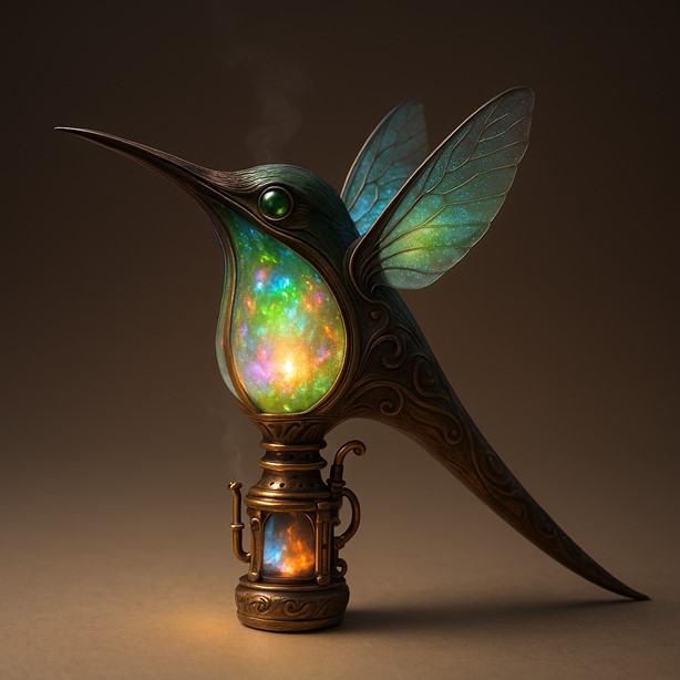 • Extra-Sensory Perception (Life Pulse): Some observers sense a fleeting pulse of the hummingbird’s life-giving spirit, a whisper of nourishment and agility, as if the lantern channels an ancient grove guardian’s presence, visible as a subtle shimmer in the light.