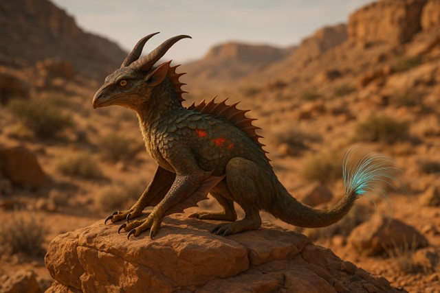 - Rare Materials: Its shard-like scales are prized for crafting light armor plates that resist both cutting and heat, while the bioluminescent filaments can be rendered into inks or potions that reveal hidden inscriptions or ward off desert predators.