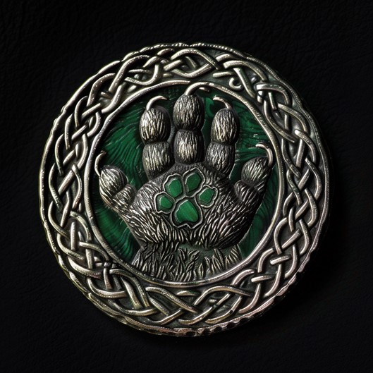 Badge and Symbol: The badge worn by members of the Guardians of the Beastbond is a circular pin made of intertwined silver and emerald-colored metal. At its center lies a detailed emblem depicting the intertwined forms of a human hand and a paw. This emblem symbolizes the unity of humans and animals through the Beastbond. The hand and paw blend seamlessly, signifying the harmony and synergy achieved through their connection.