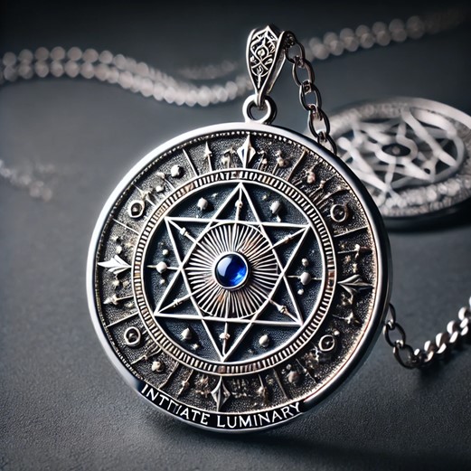 Badge Description: The badge worn by members of the Luminous Ascendancy is a radiant amulet suspended from a delicate silver chain. The amulet itself is a circular disc, each rank distinguished by a unique arrangement of gemstones and symbols that illuminate when touched by starlight or moonlight.