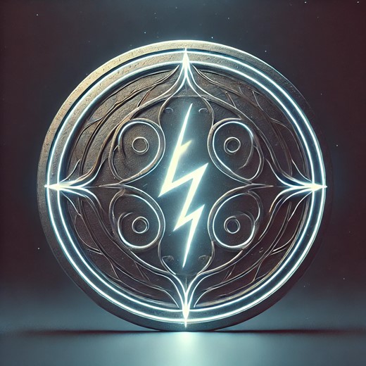 Badge and Symbol: The badge worn by members of the Voltarian Collective is a circular emblem made of a metallic material infused with a faint bioluminescent glow. In its center is a symmetrical design that combines the form of a lightning bolt and a leaf, representing the harmony between bioelectricity and the natural world. The lightning bolt signifies the power of energy, while the leaf symbolizes life and growth.