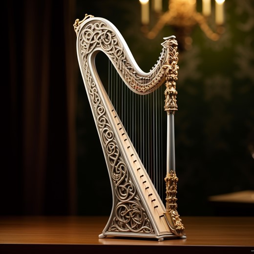 - Description: A finely crafted lyre adorned with intricate engravings and ethereal strings.