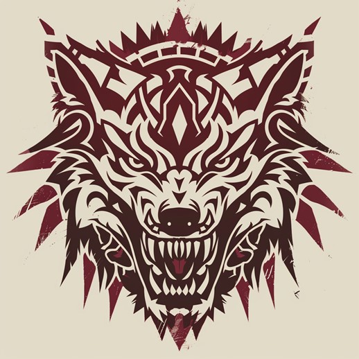 Graphic Appearance: The Mark of Savage Dominion takes the form of a snarling wolf’s head with bared fangs and fierce eyes. The wolf’s head is surrounded by stylized tribal patterns, symbolizing the primal and wild nature of the Bloodfang Clan. The emblem is typically rendered in deep crimson or dark shades, representing the untamed fury that lies within those who bear it.