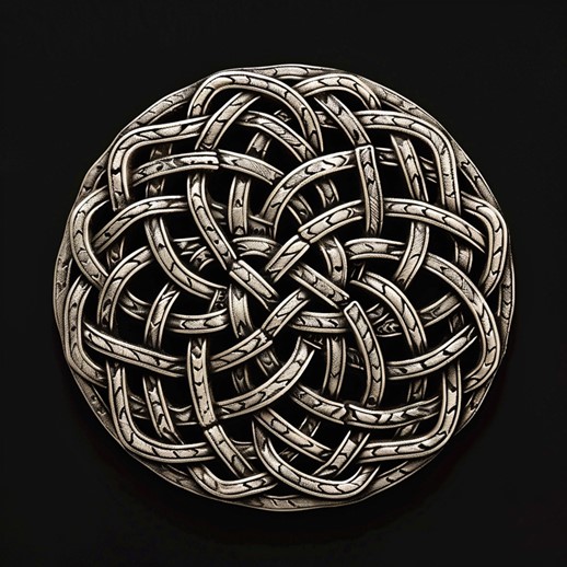 Graphic appearance: The Symbol 23 of the Eternal Knot is a complex, interwoven pattern that resembles a series of loops and knots. It is often depicted in a circular shape, with the knot work forming a dense, intricate design in the center. The symbol is typically rendered in black and white, but can also be found with various color schemes, depending on the preference of the individual.