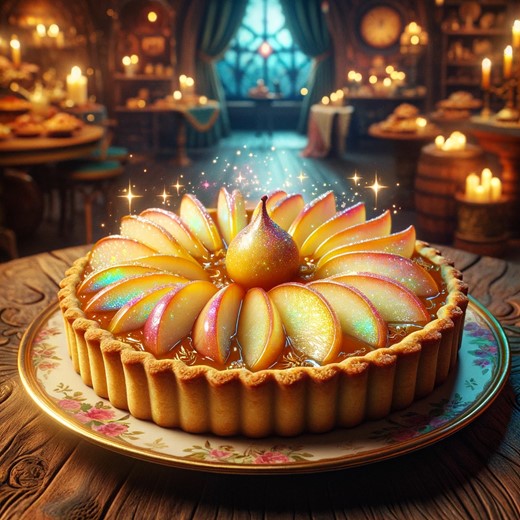 - What is Perceived: The tart presents a captivating visual with its golden crust and beautifully arranged slices of iridescent Etherapples, topped with glistening caramel and a sprinkle of twinkling stardust salt.