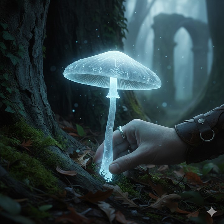 - Positive: Absorbed Echo When the avatar eats the fungi, they experience a brief but vivid sensory flash—an “echo” of a significant event or a powerful emotion that was absorbed by the fungi as it grew. This is not a clear vision, but rather a jumble of impressions: the scent of old parchment, the feeling of profound loss, the sound of a specific, long-forgotten phrase, or the glint of a hidden key. This absorbed memory can provide a cryptic but valuable clue related to the fungi’s location, helping to solve a puzzle, understand a creature’s motivation, or uncover a piece of local history. For a short time after consumption, the avatar feels a deep, instinctual connection to that specific memory, granting them an advantage on one skill check directly related to acting on the information they absorbed.