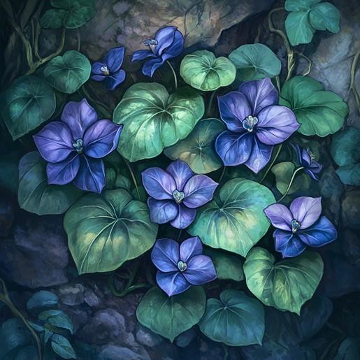 Appearance: Drunkenroot has distinct heart-shaped leaves that are a vibrant emerald green. Its flowers bloom in various shades of purple and blue, with delicate petals that resemble miniature goblets. The herb emits a sweet, fruity aroma, enticing both humans and forest creatures alike.