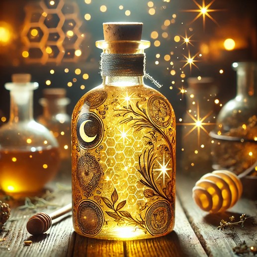 The story tells of how the Spiritvine, a rare plant said to drink the light of the stars, first appeared in a grove bathed in eternal moonlight. With it, enchanted honey gathered from hives guarded by luminous fireflies, and celestial nectar harvested from blossoms that bloomed only under the light of a comet, the alchemists set to work.