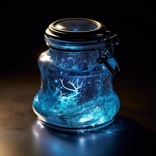 Appearance: The Glowing Adornment Gel is a semi-translucent, silvery-blue substance with tiny shimmering particles suspended within. Stored in ornate glass jars, the gel emits a soft glow even when sealed.