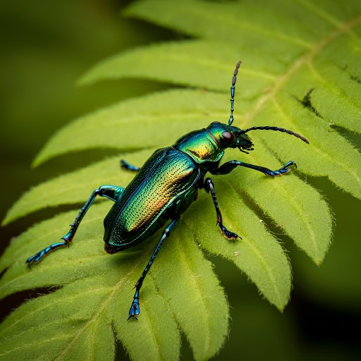 Moral of the story: In the depths of the rainforest, where life teems with vibrant energy, the Zephyrblade Beetle shines, a beacon of balance and resilience. It reminds us to embrace our inner strength, to find harmony in our surroundings, and to illuminate the world with our own unique light.