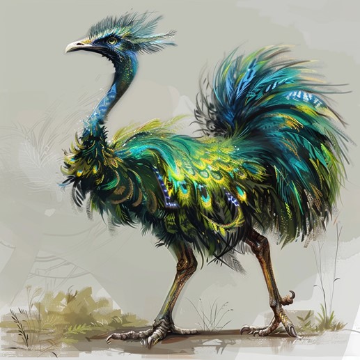 Lore: These large, flightless birds are prized for their incredible jumping abilities and agility. Originally found in a high-magic realm characterized by floating islands and treacherous ravines, Skystriders evolved powerful legs that can propel them vast distances or vertically into the air. Domesticated over time, they are now a valuable asset and status symbol in Saṃsāra.