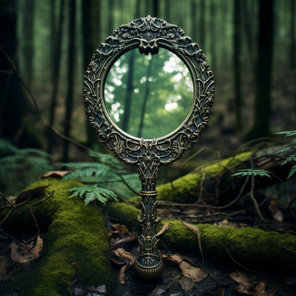 - What is Perceived: Ornate hand mirror with forest motifs and mysterious runes.