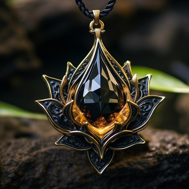 - Description: The golden petals feel smooth and delicate, while the obsidian shard subtly vibrates.