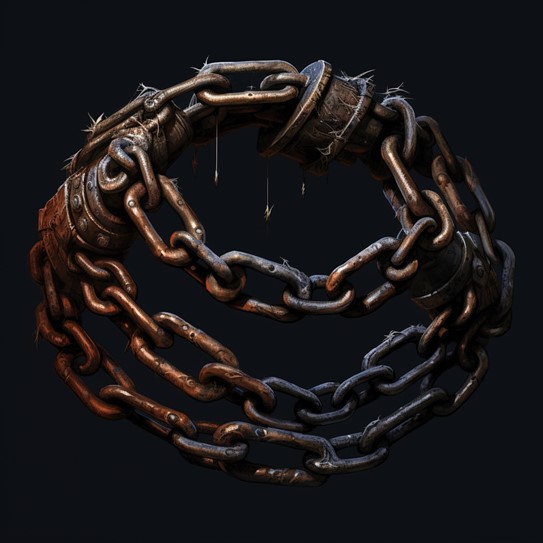 Roleplay: The wearer of the Abused Chains may feel surges of anger and resentment, especially when reminded of past injustices. They could develop a tendency to dominate or control situations, sometimes resorting to intimidation. There’s a constant struggle within them, battling the chains’ influence and their own moral compass.