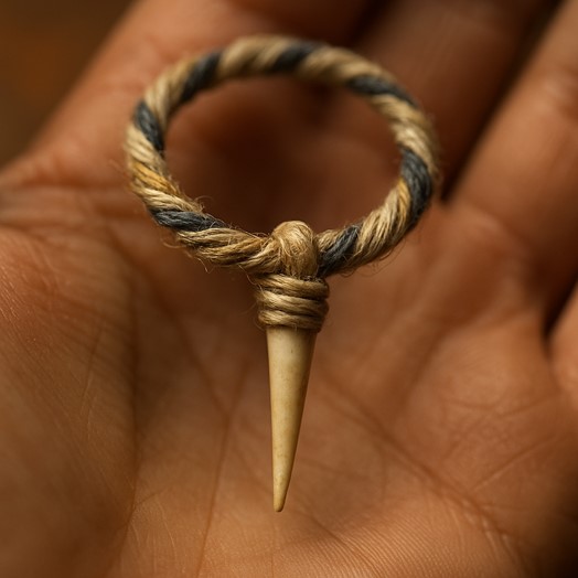 A handmade folk charm resembling a ring of flax and bone. Resonates faintly in the presence of deception or unethical behavior. Treated as a cultural magical focus by practitioners of Folk Magic.