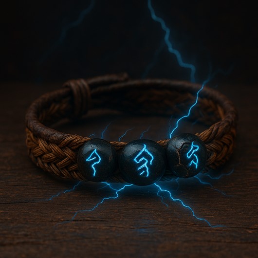 Description: A short, rugged band of braided storm-grass and hardened driftleather, worn high around the bicep or tied at the wrist. Three obsidian beads—one rough, one smooth, one cracked—are sewn along the cord, each etched with ancient glyphs of thunder’s approach. When activated, faint rumbles echo in the bearer’s chest rather than the air. The scent of rain and singed air clings to the band, even in desert heat.