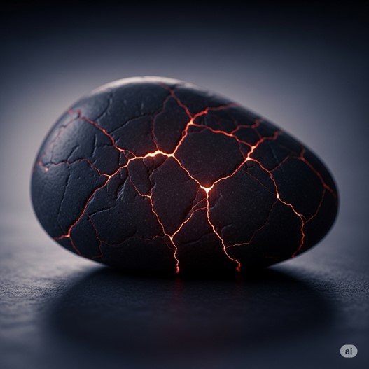 This is a smooth, dark river stone, unremarkable in every way except for the faint, heat-induced cracks on its surface. It is cool to the touch. Such stones have been found in the possession of junior members of various esoteric cults, seemingly used as a focus for meditation or a simple touchstone. Their true purpose is far more insidious.