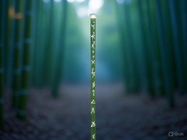 - Material: Qi-infused bamboo, silver runes, jade core, crystal nodes