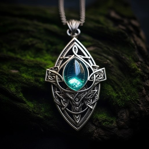 - The gemstone at the center of the amulet emits a soft, ethereal glow, casting subtle patterns of light that dance across nearby surfaces.