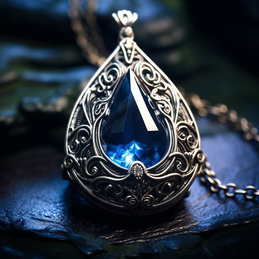 - Description: The teardrop amulet momentarily outshines everything in its vicinity, casting a radiant blue glow.