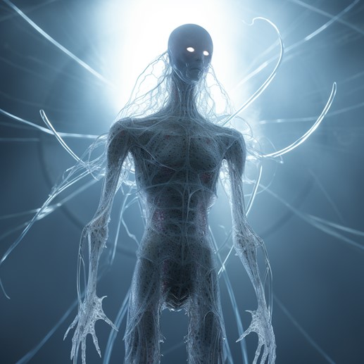 Minion Appearance: The Acupunctite manifests as a tall, slender humanoid with transparent skin revealing a network of meridian lines underneath, pulsating with a soft blue light. Its eyes resemble silver needles, sharp and penetrating, and its fingers taper into needle-like tips.