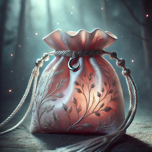 - Sight: The pouch’s glow becomes more noticeable, its rosy hue radiating gently, creating a soft, magical ambiance. The silver threads reflect the light, creating an intricate, flowing visual effect.