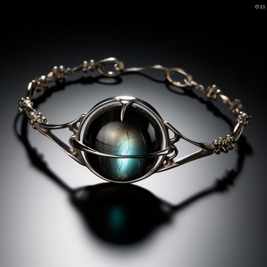 - What is Perceived: A silver bracelet with an intricately embedded sphere.