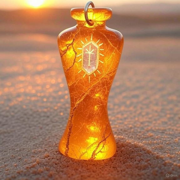 - Aspect: A desert glass amulet glowing with absorbed sunlight