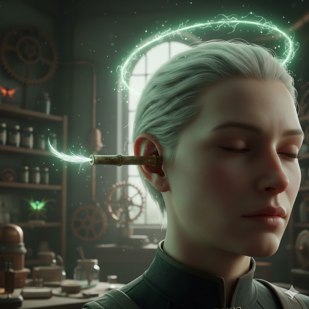 User’s Perspective When the Ethologist triggers the Taoist 819, the sensation is one of profound mental expansion and sensory heightening. Behind the ear, the lynx-whisker within the bamboo tube begins to vibrate at a frequency that matches the user’s brainwaves, creating a soothing but alert “hum” that resonates through the skull. The user’s vision shifts; they no longer see a beast as a mere creature, but as a map of bio-indicators. Tail twitches, pupil dilations, and scent-marking become as clear as written text. The user feels a strange, empathetic weight—a ghostly phantom limb or “sixth sense” that mimics the tail or whiskers of the creature they are observing. Their own breathing automatically adjusts to the rhythm of the wild, providing a sense of being “at home” in even the most hostile environments.