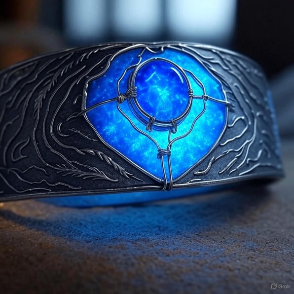 - Description: A silver belt buckle with glowing sky-blue runes and a central lapis lazuli gem pulsing with mist, crafted by Tengrist shamans, designed for fast-draw roleplay.