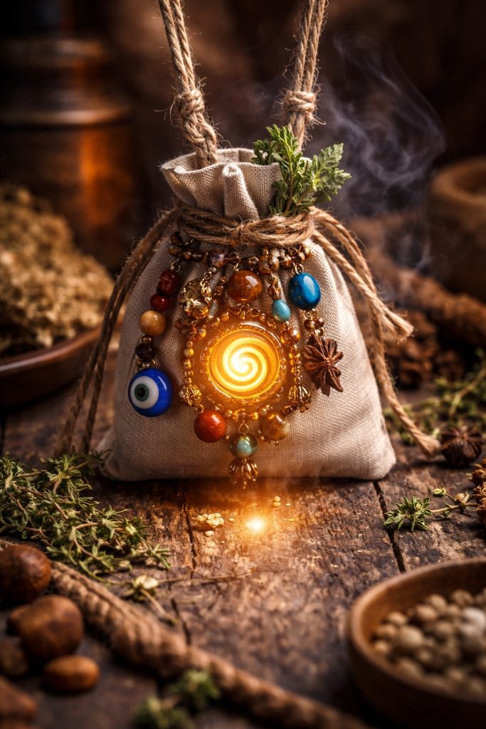 A small folk charm composed of bead, cloth, and herb-wrapped core, imbued with traditional Anatolian warding practices. It stabilizes bodily systems and deflects ill intent expressed through food, drink, or stress.