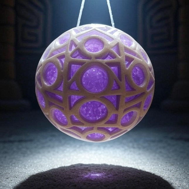 - Geomantic Spirit-Alignment: The orb enhances the wearer’s perception of geometric spiritual activity by attuning to ambient mana tied to patterned landscapes. When near such sites (e.g., ley lines, symmetrical formations), the wearer gains a minor advantage on checks to analyze or detect geometric structures, signaled by a subtle amethyst glow.