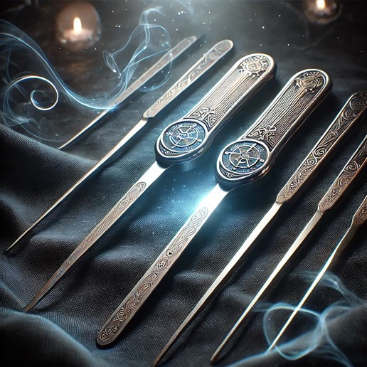 The work began beneath the moon’s watchful gaze. Theryn melted the Soulsteel and shaped it into delicate picks, their forms impossibly slender, their edges sharper than light itself. He tempered them in dew gathered at midnight and etched runes upon their surface with tools of silver and bone. For nine nights, the moonlight itself seemed to linger longer, as though aiding Theryn in his task. On the tenth night, the Whispering Keys were born.