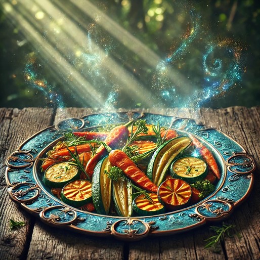 The recipe was whispered to the druid’s disciples, passed through generations like the breath of wind itself—shifting, adapting, yet always retaining its essence. Wars, famine, and greed failed to erase its mark, for the winds carried the secret to those worthy. Even now, Zephyrstone-infused Roasted Vegetables are said to hold the grace of that sacred grove, offering a fleeting bond with the spirits to those who partake.
