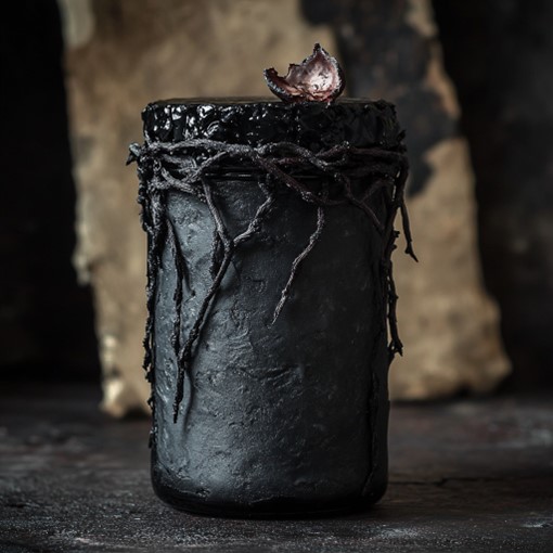 - Description: This small jar contains a thick, blackish-green paste that smells faintly of flowers and decay.