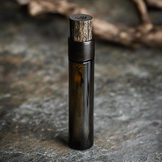• Description: A viscous, translucent liquid with a faint bluish-white hue, contained in a small, dark glass vial. It has a subtle, earthy odor.