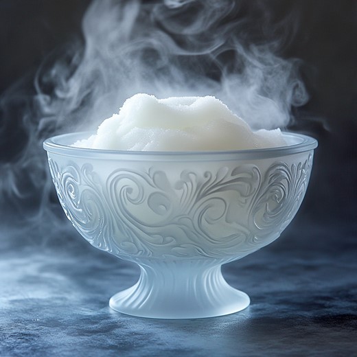 - Form: A small, shimmering serving of sorbet in a frosted glass bowl.