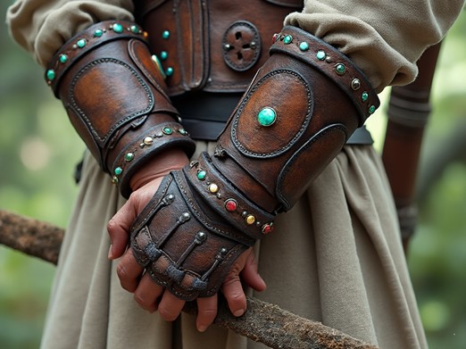 - Description: These leather bracers are intricately decorated with small gemstones. They grant the wearer increased accuracy with ranged attacks and quicker reflexes, making them highly sought after by archers and hunters alike.