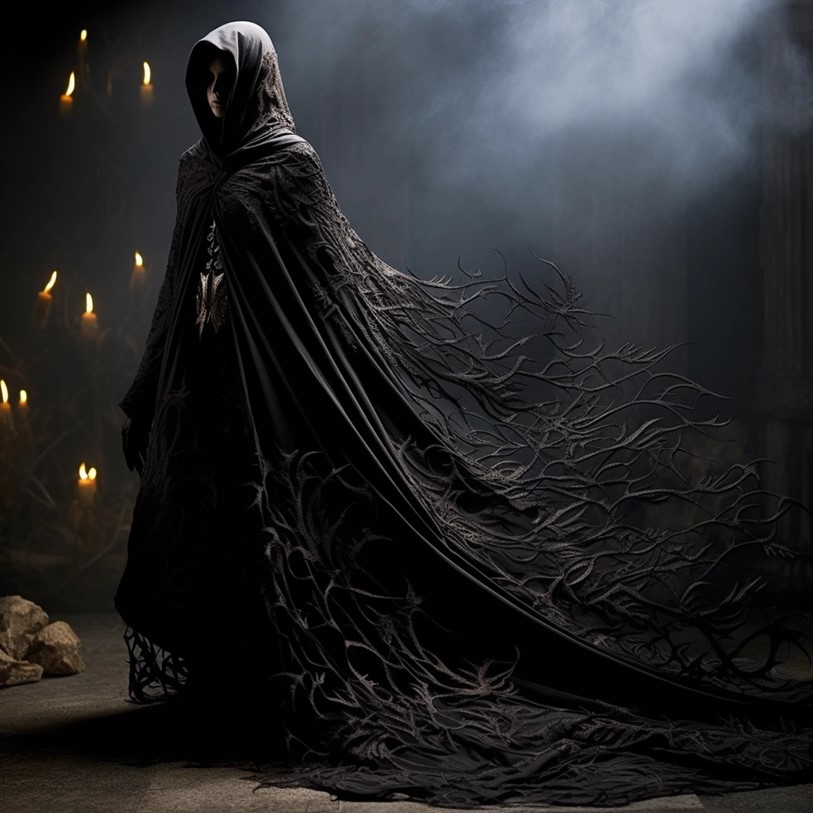 - Visual Shift: Upon activation, the cloak absorbs the surrounding light, creating a ripple of darkness that washes over the wearer’s body. The edges of the cloak blur, seamlessly blending with nearby shadows and darkened areas. The intricate branch and leaf patterns subtly glow with an eerie, natural luminescence, making them barely visible, like faint moonlight filtering through trees.