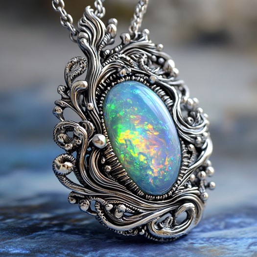 Color: The opal centerpiece radiates a mesmerizing play of colors, evoking the mysteries of the deep sea and the stories it holds.