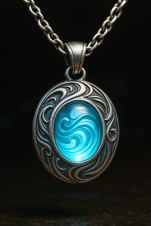 Centuries passed and the Amulet drifted adrift among ship-wrecks, its waters-run gem dimmed by silt. Until a prudent banker of coral-keep, Aelix Tidebalance, found it tangled in kelp and ruin. He polished the silver with tears of remorse, chanting faded verses of Marin’s own making—though scribes confess the translator erred in half the lines. When he raised the Amulet at dawn’s first swell, the glyphs returned clear: debt and credit in perfect sway, losses repaid by compassion, profits shared by need. Aelix restored fair trade ‘twixt reef and shore, and the Amulet’s gem glowed anew, a circle unbroken.