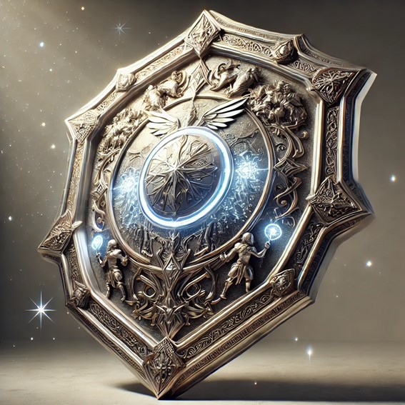 • Description: A divine shield crafted from mithril and celestial silver, adorned with celestial engravings and emitting a radiant glow.