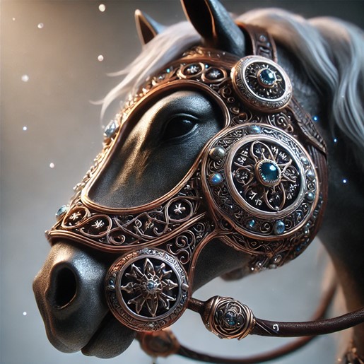 - Description: A beautifully crafted bridle, adorned with gemstones and inscribed with ancient runes. The bit hums with magic, binding the rider to their mount in body and spirit.