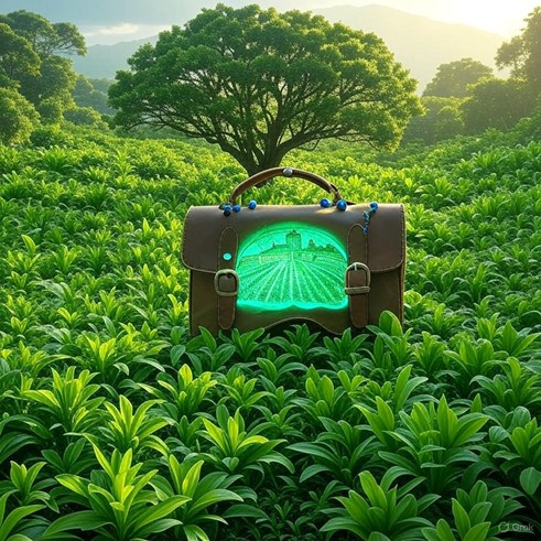 - Observer’s Perspective: To those watching, the activation of the Verdant Alchemist’s Bounty 749 is a mesmerizing display of natural and arcane synergy. They see the satchel’s surface glow with verdant ink, its illustrations of fields and crops shimmering as if alive, while the sapphire beads pulse with a gentle green-blue light, casting a soft glow around the user. A faint, misty aura surrounds the satchel, swirling like morning dew in the air, creating a serene atmosphere. They smell a comforting blend of herbs and earth, a fresh, grounding scent that evokes a thriving forest or field, wafting from the satchel as it activates. They hear a low, rhythmic hum, like the murmur of a distant harvest, paired with a soft chime from the enchanted brass buckles, blending harmoniously with natural sounds. The observer might notice the user’s movements becoming more deliberate and focused, as if guided by an unseen force, the satchel’s warmth and vibration subtly perceptible in the air. Beyond the physical, observers feel a palpable sense of vitality emanating from the satchel, as if the life energy of the land is radiating outward, calming those nearby. Some might sense a gentle magical current, hinting at the satchel’s connection to both alchemy and nature, enhancing the atmosphere with a feeling of growth and harmony.