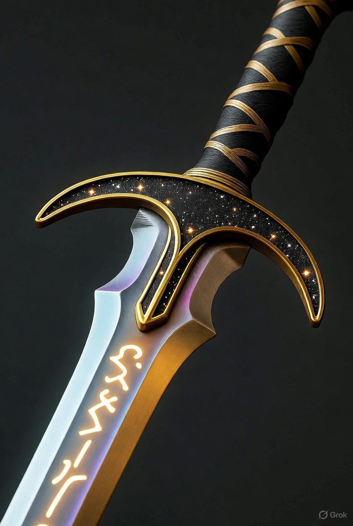 Perception of Sight What is perceived: The blade displays an iridescent sheen shifting between soft blues and warm golds, with pulsing runes that adapt in color to nearby allies or the wielder’s emotional state, while the hilt shows dark leather wrapped with faint golden filigree resembling interlocking waves or vines, and the crossguard features curved brass extensions embedded with sparkling starlit iron flecks. Description: When activated, the runes emit a gentle, adaptive light in a 10-foot radius of dim illumination, harmonizing hues to reflect affinities, such as matching the glow to an ally’s aura or shifting dynamically during resonant moments, with the overall form maintaining a balanced, medium-sized profile that subtly vibrates visually in high-magic flows. Positives: The adaptive light aids in low-visibility areas like cave systems or foggy aerial routes, revealing hidden details or signaling affinities to allies during explorations in jungle ruins or underwater settlements, and the shifting sheen enhances the wielder’s diplomatic presence in urban megacities or temple sanctuaries, potentially improving charisma interactions by drawing attention to shared connections. Negatives: The pulsing runes may compromise stealth in dark environments, such as nighttime coastal trades or subterranean vaults, attracting unwanted notice from predators or rivals, and the color shifts could distract the wielder in chaotic battles if not attuned, while the sparkling flecks risk revealing positions in reflective surfaces like water or polished skyscraper walls.